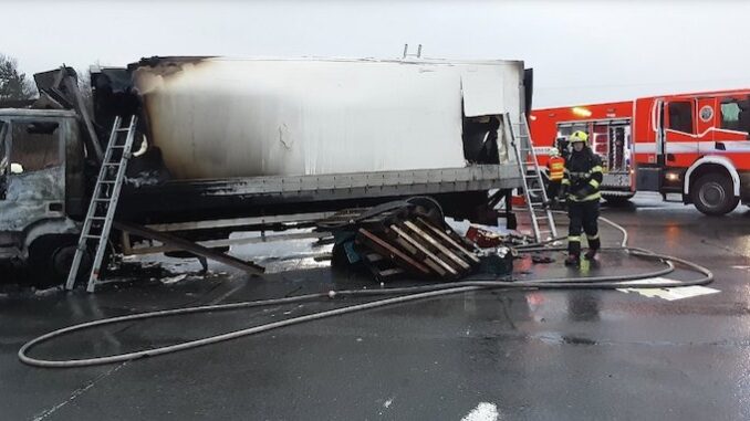 OLOMOUCKO – Dnes ráno hořel kamion naložený potravinami na silnici u Velkého Újezdu. Na místě zasahovali tři jednotky hasičů. Událost se naštěstí obešla bez zranění. Dopravu řídila kyvadlově policie.