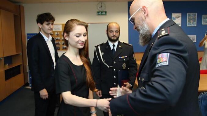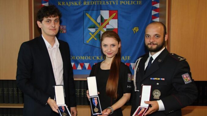 O záchraně 90letého seniora z hořícího a silně zakouřeného rodinného domu v Horní Moštěnici na Přerovsku jsme vás informovali v tomto článku. Policisté seniora v hořícím domě rychle našli, společnými silami vynesli ven mimo nebezpečí a poskytli mu první pomoc. “Svým pohotovým a profesionálním jednáním policisté zachránili lidský život a to bez ohledu na nebezpečí, které jim při zásahu hrozilo,” ocenila jejich zásah policejní mluvčí Miluše Zajícová. Dnes předal policejní ředitel územního odboru Přerov Martin Crha policistce a dvěma policistům ocenění, které jim udělil krajský ředitel za záchranu života. Praporčík Martin Vykoukal si odnesl medaili krajského ředitele I. stupně a jeho dva kolegové nadstrážmistr Kristýna Žloudková a nadstrážmistr Radim Kolařík si převzali stejnou madaili, ale II. stupně. Prvně jmenovaný kolega již tuto medaili ve své sbírce má, protože se na záchraně lidského života podílel koncem loňského roku. Všichni jmenovaní slouží na obvodním oddělení policie Přerov 1.