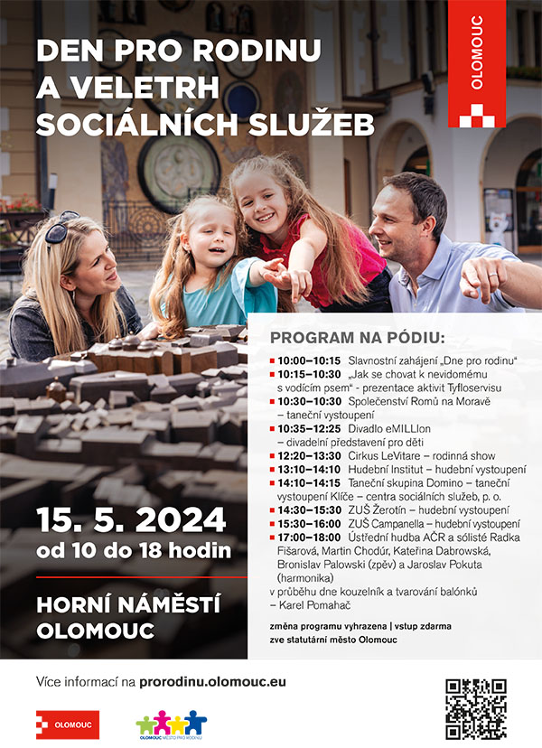 OLOMOUC – Mezinárodní den rodiny připadá na středu 15. května a město Olomouc na tento den připravilo program pro všechny generace. Na Horním náměstí se budou prezentovat poskytovatelé sociálních služeb a volnočasových aktivit. Na pódiu se od 10 do 18 hodin vystřídá pestrá paleta hudebních a tanečních vystoupení.