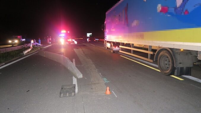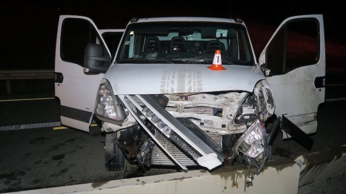 OLOMOUCKO – Nehoda se stala dnes o půl druhé v noci na dálnici D35 u Olomouce. Řidič dodávky Iveco s přívěsem, který převážel tři osobní auta, předjížděl v levém jízdním pruhu ve směru na Ostravu v zúženém místě kamion Mercedes a z boku do něj narazil. Přívěs s auty se při nehodě odpojil a havarovaná dodávka zablokovala oba jízdní pruhy.