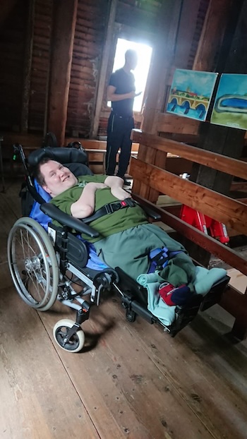 Jakub využívá kvůli svému hendikepu speciální vozík, který nelze přepravovat jen tak čímkoli. Hasiči proto upravili jeden z jejich dopravních automobilů, vozík naložili, bezpečně uvnitř zajistili a vyvezli ho až k rozhledně. „Pokračovat už jsme museli ručně a Jakuba jsme na rozhlednu vynesli. Dle slov přátel a opatrovníků si zahájení výstavy užil,“ doplnila Balážová.