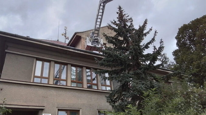 Zásah hasičů na budově školky v Arbesově ulici v Olomouci – Slavoníně, fotky Hasičský záchranný sbor Olomouckého kraje