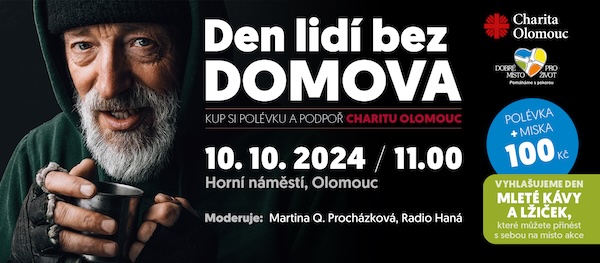 OLOMOUC – 10. říjen patří v Olomouci tradičně Dni lidí bez domova, který pořádá Dobré místo pro život spolu s olomouckou Charitou. Horní náměstí před radnicí tak provoní ve čtvrtek od 11:00 hodin zelňačka, česnečka, bramboračka, valašská kyselica, boršč, kulajda, uzená, gulášová ale i dýňová. Přijďte si včas koupit chutnou polévku, vyprodají se obvykle během hodiny.