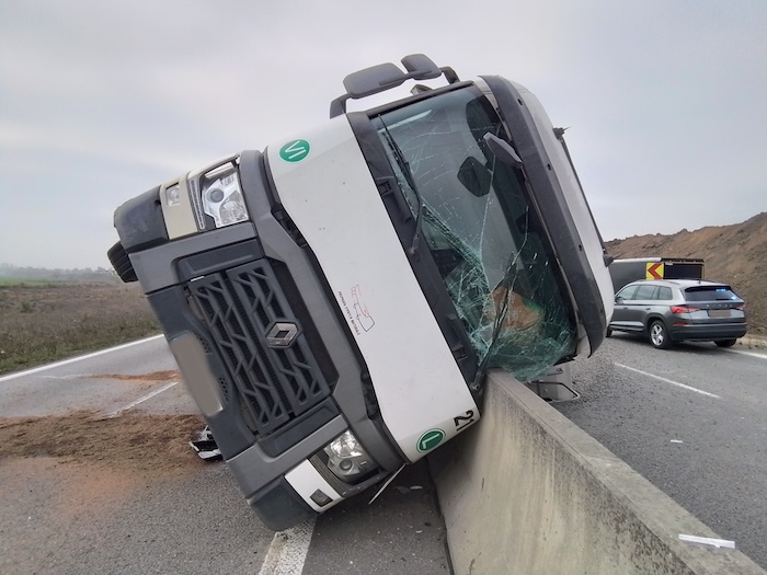 Dnes krátce po 9. hodině se stala v Olomouci na D35 asi jeden kilometr za kruhovým objezdem směrem na Ostravu tragická dopravní nehoda. „Podle prvotních informací řidič nákladního vozidla z dosud nezjištěných příčin najel do betonových svodidel a skončil převrácený v protisměru. V dané chvíli tudy projížděl osobní automobil, se kterým se střetl,“ popsala nešťastnou bouračku policejní mluvčí Ivana Skoupilová. Řidič osobního auta na místě utrpěl smrtelné zranění. Vysypaný náklad poškodil další dvě projíždějící auta. Kamion podle hasičů převážel štěrk.