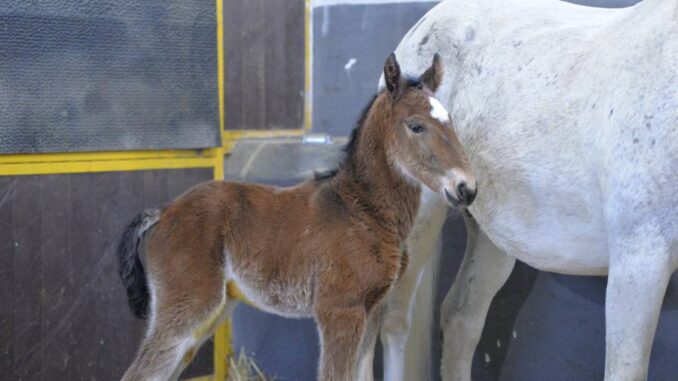 KLADRUBY NAD LABEM – Národní hřebčín v Kladrubech včera přivítal na svět první letošní hříbě. Je to starokladrubský hřebeček Generalissimus Sandera VI – 9, který přibyl do bílého stáda hřebčína.