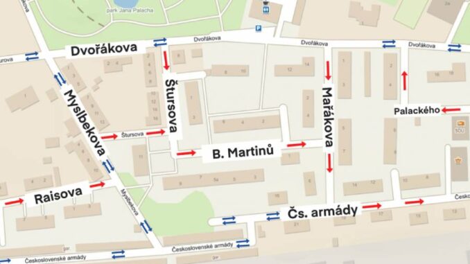 Do konce tohoto roku vzniknou jednosměrné ulice poblíž parku Jana Palacha. Pokud zde bydlíte nebo místem často projíždíte a máte k úpravě nějaký dotaz či připomínku, obraťte se na: