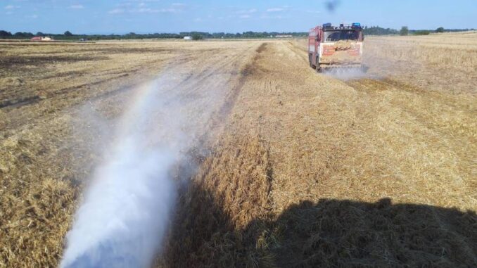 Oznámení přišlo hasičům o půl páté odpoledne. Přítomní pracovníci si všimli, že při sklízení obilí hoří část posekaného pole, neváhali a začali hasit hasícími přístroji. „Přivolané jednotky začaly požár hasit za pomocí lišt na vozidlech a vysokotlakého proudu. Byl vyhlášen druhý stupeň požárního poplachu. Požár mají hasiči již pod kontrolou,“ objasnil mluvčí hasičů Miroslav Polák.