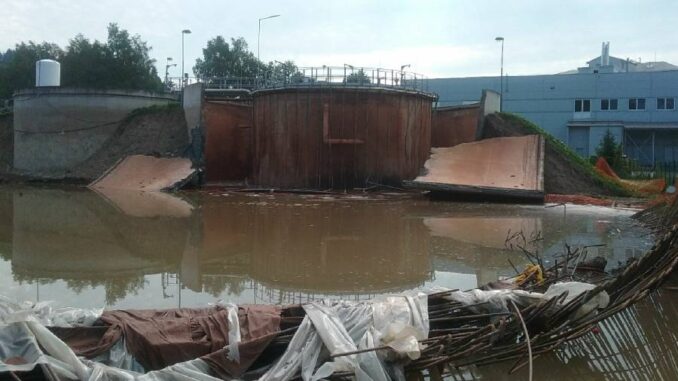 V čistírně praskla betonová stěna nádrže na odpadní vody. „Z nádrže vyteklo přibližně pět set metrů krychlových znečištěné vody. Naštěstí se v době nehody na stavbě nenacházel žádný z dělníků,“ řekl mluvčí hasičů Miroslav Polák. Chemici následně odebrali vzorky vody, aby mohli analyzovat látky, které se v ní nachází z důvodu blízkosti vodoteče a jejího možného znečištění.