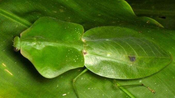Nejdokonaleji však napodobují listy rostlin lupenitky, kobylky a kudlanky. Velká plochá křídla lupenitky indické mají tvar a barevný vzorek přesně odpovídající zbarvení listí. Podobně tvarované má lupenitka i nohy, jejichž články jsou zelené a nápadně rozšířené. Velká přední křídla některých kobylek jsou zase listovitá, často s nepravidelnými okraji, které připomínají list okousaný jiným hmyzem.