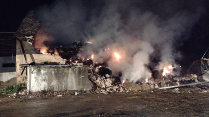 Oznámení o požáru opuštěného objektu přišlo na tísňovou linku o půl šesté odpoledne. Hořící stavba měla rozlohu čtyřicet krát patnáct metrů, neměla dveře, takže byla volně přístupná. „Při příjezdu první jednotky na místo byla již celá střecha v plamenech. Zděný objekt byl plný naskladněných balíků slámy,“ uvedla mluvčí hasičů Vendula Horáková.
