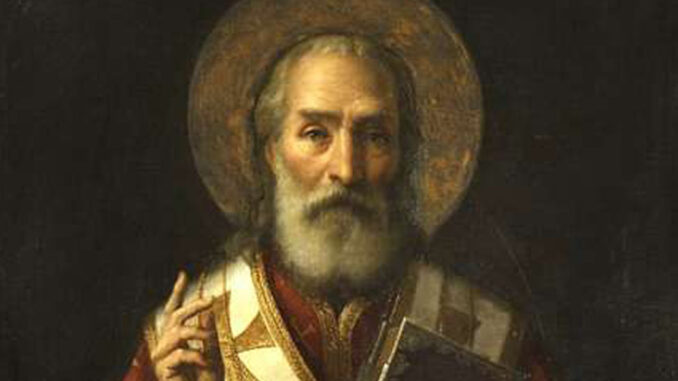 Zemřel patrně 6. prosince, ovšem podle některých historiků jde možná o to, aby byl lépe podložen jeho svátek na tento den, aby nahradil pohanský svátek zrození Diany, římské bohyně lovu.
