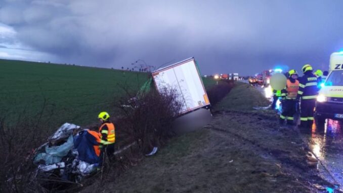 PARDUBICKÝ KRAJ – Včera podvečer došlo k tragické nehodě na silnici z Pardubic směrem na Chrudim. V příkopu skončil kamion a osobní auto. Ze zdemolovaného auta už nebylo řidiči pomoci.
