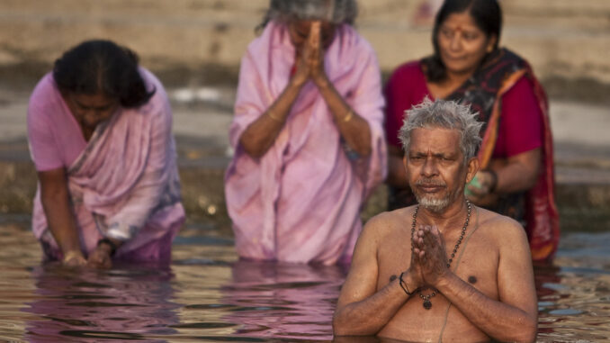 Posvátná řeka Ganga - koupel. Zdroj: www.flickr.com