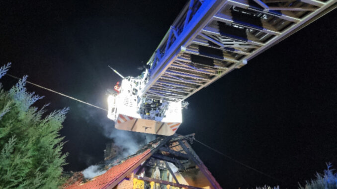 PARDUBICKO – Čtyři jednotky hasičů mířily v sobotu o půl šesté odpoledne k velkému požáru rodinného domu do Starého Mateřova. Střechu a horní patro domu polykaly plameny, zásah navíc komplikovaly fotovoltaické panely na střeše. Jedna osoba utrpěla popáleniny, když se snažila z domu zachránit psa, druhá se nadýchala jedovatých zplodin.
