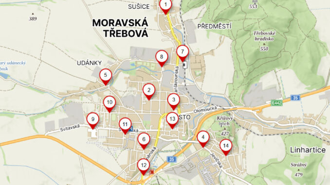 Mapa stanovišť Zdroj: Město Moravská Třebová