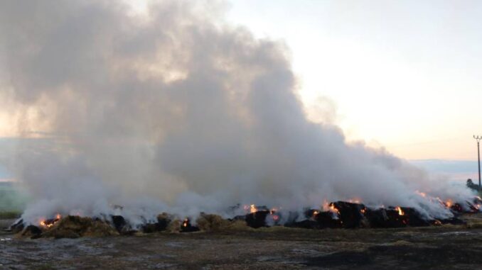 Hasiči uhasili balíky a místo požáru ohledal kriminalistický technik s vyšetřovatelem hasičů. S ohledem na ohnisko požáru, typ slámy a všechny další skutečnosti mají policisté podezření na cizí zavinění.