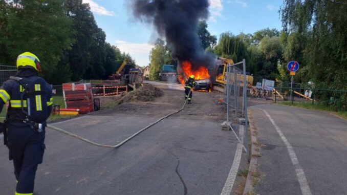 Vedle hořící dodávky stál i bagr, který naštěstí nechytl, ale museli ho ochlazovat, aby nedošlo k ještě větším škodám. Celý požár dostali pod kontrolu za dvanáct minut a dále ještě ochlazovali lahve. Proč k požáru došlo je nyní v šetření.