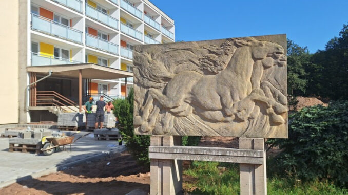 KLADRUBY NAD LABEM – Konstrukce nové jezdecké haly pomalu roste v prostorách Střední školy chovu koní a jezdectví v Kladrubech. Ozdobou se stanou tři siluety starokladrubských koní v chodu, v kroku a ve cvalu.
