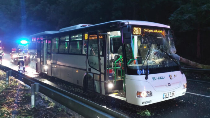 K druhé nehodě spěchala dnes jednotka hasičů brzy ráno. Strom zasáhl přední sklo autobusu. Řidič bohužel skončil se zraněním a záchranka ho odvezla do nemocnice. Hasiči strom následně odřezali a doprava byla vedena kyvadlově jedním pruhem.