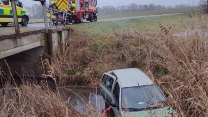 SVITAVSKO – Při dopravní nehodě na namrzlé silnici skončilo osobní auto v potoce. Dvě osoby museli hasiči z auta transportovat.