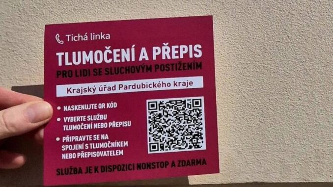 Lidé se sluchovým postižením mohou v současnosti nově využít jednodušší přístup k online tlumočnické službě, a to pomocí načtení QR kódu. „Věříme, že sluchově postiženým tato novinka umožní důstojnější vyřizování svých záležitostí na úřadě,“ řekl náměstek hejtmana Pardubického kraje Pavel Šotola. V prostorách krajského úřadu najdete samolepky s QR kódem a informační letáky, za pomoci nich se s pracovníky krajských úřadů lidé se sluchovým postižením snadno dorozumí.