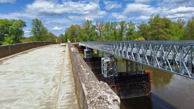 Starý most, po kterém se překonávalo Labe, má zjevné trhliny, praskliny a poškození jak nosné konstrukce, tak na spodní stavbě. Provoz na něm musel být přerušen. Kraj proto pořídil nové mostní provizorium vedle stávajícího mostu. „Nová stavba bude respektovat všechny požadavky Ředitelství vodních cest a Povodí Labe pro zajištění splavnosti Labe a také zapadat do zdejší krajiny v blízkosti Národního hřebčína Kladruby nad Labem, který je součástí jedinečného kulturního dědictví zapsaného na seznamu UNESCO. Most bude měřit téměř sto šestnáct metrů, bude mít moderní ocelovou nosnou konstrukci, a chodníky pro pěší a cyklisty po obou stranách. Umožní tedy nejen bezpečný pohyb motoristů, ale také cyklistů a turistů, kteří přijíždějí objevovat krásy Polabí,“ objasnil hejtman Pardubického kraje Martin Netolický.