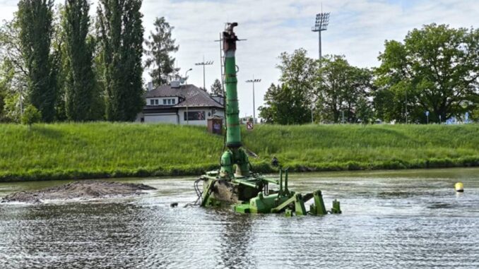 PARDUBICE – V Pardubicích u zdymadla čistí koryto Labe od naplavenin podvodní buldozer. Cílem celé akce je zajištění bezpečné plavební dráhy pro lodní dopravu.