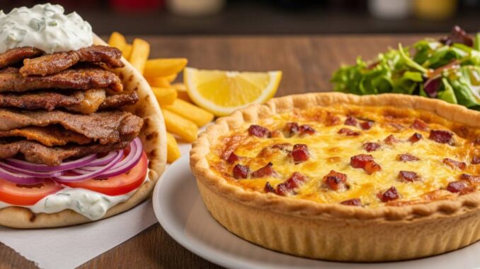 Slovo gyros pochází z řeckého slova γύρος (gyros), což znamená otočit se/otáčení. Gyros je tradiční řecký pokrm inspirovaný tureckým döner kebabem. Maso (často vepřové, kuřecí nebo jehněčí) se vrství na otočný gril, pomalu se peče, přičemž se upečené části odkrajují v tenkých plátcích. Často se podává v pita chlebu s tzatziki, rajčetem, cibulí a hranolky.