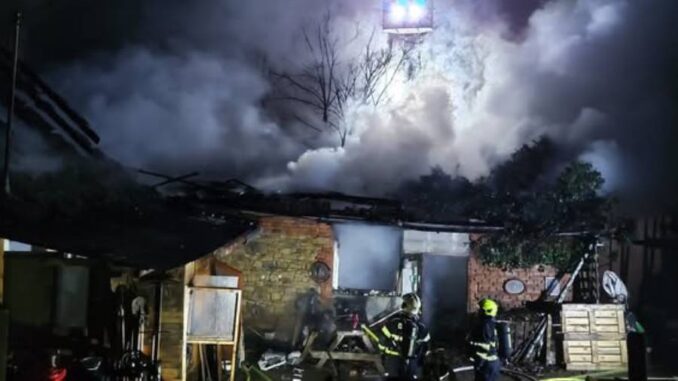 V ten samý den po třetí hodině ranní likvidovali požár nízké budovy. Hořelo hospodářské stavení s uskladněnými věcmi. „Na místo události vyjela profesionální jednotka ze Seče a dobrovolné jednotky z Běstviny, Třemošnice, Prachovic a Golčova Jeníkova,“ dodal Polák. V obci museli zajistit čerpací stanoviště, ze kterého dovážely vodu. Na místo musela přijet i Správa a údržba silnic, kvůli zajištění sjízdnosti silnice.