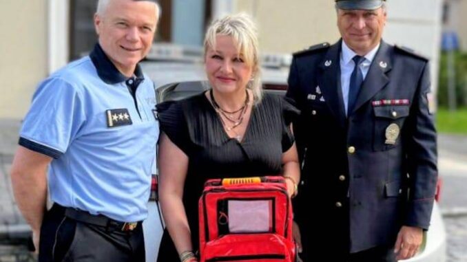 Tento krok znamená výrazné posílení schopnosti policejní hlídky účinně zasáhnout v akutních případech, kdy jde o minuty. Batoh si z rukou paní starostky převzal vedoucí Obvodního oddělení policie Kouřim Milan Nedavaška.