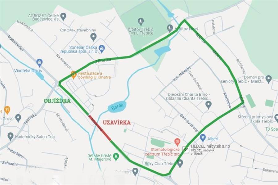 „Oprava mostu bude probíhat za plné dopravní uzavírky, která začne 21. března, průjezd stavbou bude možný od konce prázdnin,“ sdělila mluvčí třebíčské radnice Irini Martakidisová. Řidiči budou moci využívat objízdné trasy ulicemi Táborská, Míčova a Kpt. Jaroše.