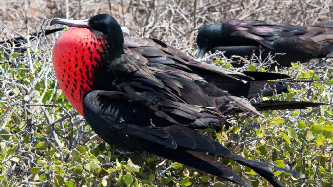 Fregatky jsou skuteční piráti tropických moří a využívají rychlosti a hbitosti svého letu k olupování jiných mořských ptáků o ulovenou potravu.