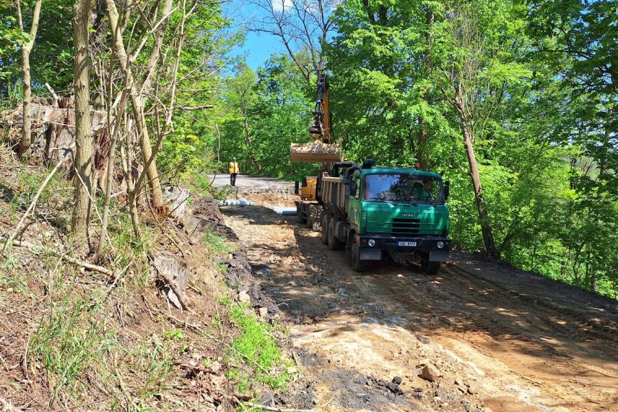 Na dvou místech byla již z vozovky odstraněna zemina do hloubky více než 1,5 metru. „Vybudováním zcela nového systému odvodnění, který spočívá mimo jiné v pokládce geotextilií, které jsou prokládány hrubou kamennou drtí, bude docíleno stabilizace svahu v podobě vytvoření takzvaného sanačního polštáře. Následovat pak bude pokládka nových konstrukčních vrstev vozovky,“ sdělil mluvčí ŘSD Jiří Veselý.