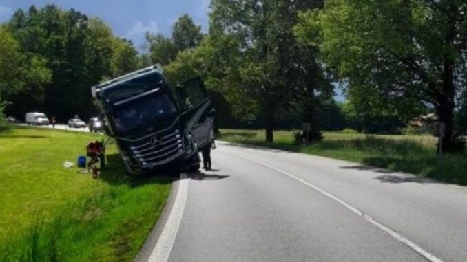 PELHŘIMOVSKO – K havárii kamionu došlo v sobotu odpoledne na silnice mezi Leskovicemi a Čížkovem na Pelhřimovsku. Řidič nadýchal přes dvě promile alkoholu.