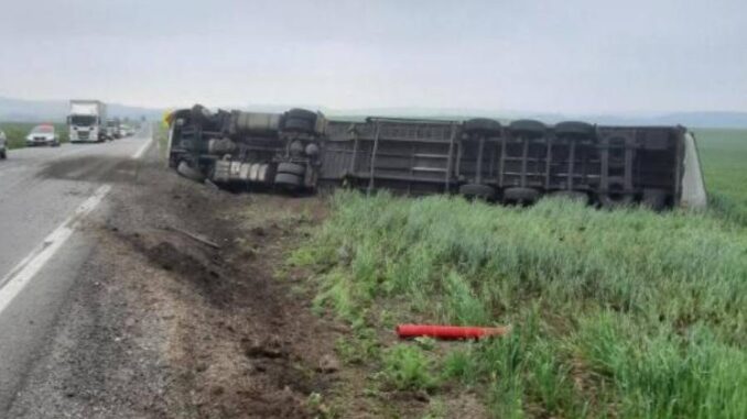 Nehoda se stala v pondělí 3. června krátce před osmou hodinou ráno. Jednašedesátiletý řidič kamionu s návěsem jel ve směru od Jihlavy na Znojmo. „V levotočivé zatáčce vyjel vlivem nepřiměřené rychlosti jízdy mimo komunikaci, kde poškodil dopravní značení, a následně havaroval, kdy se s jízdní soupravou převrátil na bok do pole,“ informovala policejní mluvčí Jana Kroutilová.