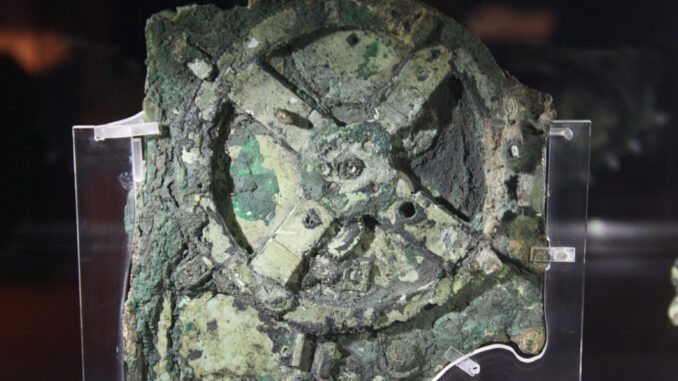 Dalším záhadným předmětem, jímž se vědci zabývali, byl podivný mechanismus, vyrobený z bronzu a uložený v obalu ze dřeva. Byl nalezen ve vraku řecké obchodní lodi, která se potopila v Egejském moři kolem roku 80 př. Kr. Když oschl, rozpadl se na 4 části a zjistilo se, že vnitřní stěny obsahují malá, jemná kolečka. Dlouhou dobu se předpokládalo, že mechanismus, objevený v roce 1900, je součásti astrolábu. Avšak v roce 1971 pořídili vědci z Yaleské univerzity v USA gamagrafické a rentgenové snímky. Díky nim se objevily vnitřní detaily, které dříve nebyly vidět.