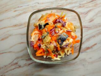 Do misky vsypeme jemně mleté ovesné vločky a zalejeme je horkou vodou tak, aby byly úplně ponořeny. (Pokud je kaše příliš hustá, přidáme vodu.) Jemně mleté vločky změknou velmi rychle, není potřeba je namáčet předem, což je velká výhoda, když spěcháme. (Klasické vločky budou potřebovat více času. Chceme-li ovesnou kaši na snídani, vyplatí se namočit je již večer.) Ovoce nakrájíme na drobné kousky a spolu s mletým kokosem vmícháme do vloček. Nakonec kaši dochutíme medem a mletou skořicí. Pro snížení glykemického indexu můžeme do pokrmu přidat trochu tvarohu či bílého, nejlépe smetanového, jogurtu.