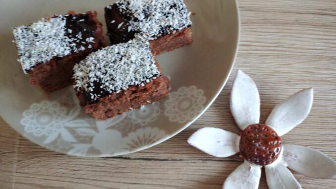 Po vychladnutí perník natřeme marmeládou nebo povidly a posypeme kokosem.