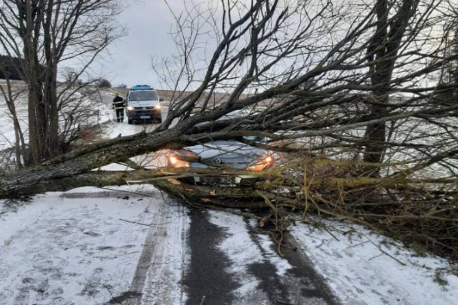 K nehodě došlo v pátek 10. ledna po sedmé hodině ráno. „Řidič jedoucí s osobním vozidlem Renault narazil přední částí vozidla do spadlého stromu přes vozovku. Při dopravní nehodě ke zranění osob nedošlo,“ uvedla mluvčí policie Michaela Lébrová. Nehodu vyřešili policisté s řidičem na místě uložením pokuty v příkazním řízení.