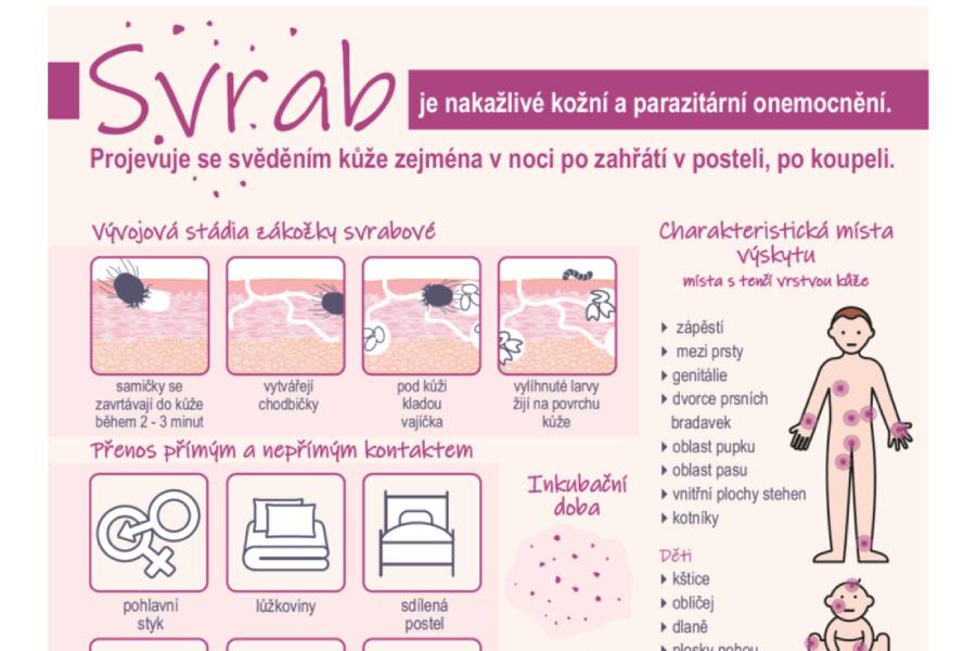 Jak dále doplňuje, svrab se snadno šíří zejména v rodinách a ve velkých kolektivech, v běžném denním kontaktu nákaza nehrozí. „Není třeba se obávat, že by se u nás svrab objevil vlivem pouhého dotyku nebo běžného podání ruky,“ zdůrazňuje Hana Pavlasová.