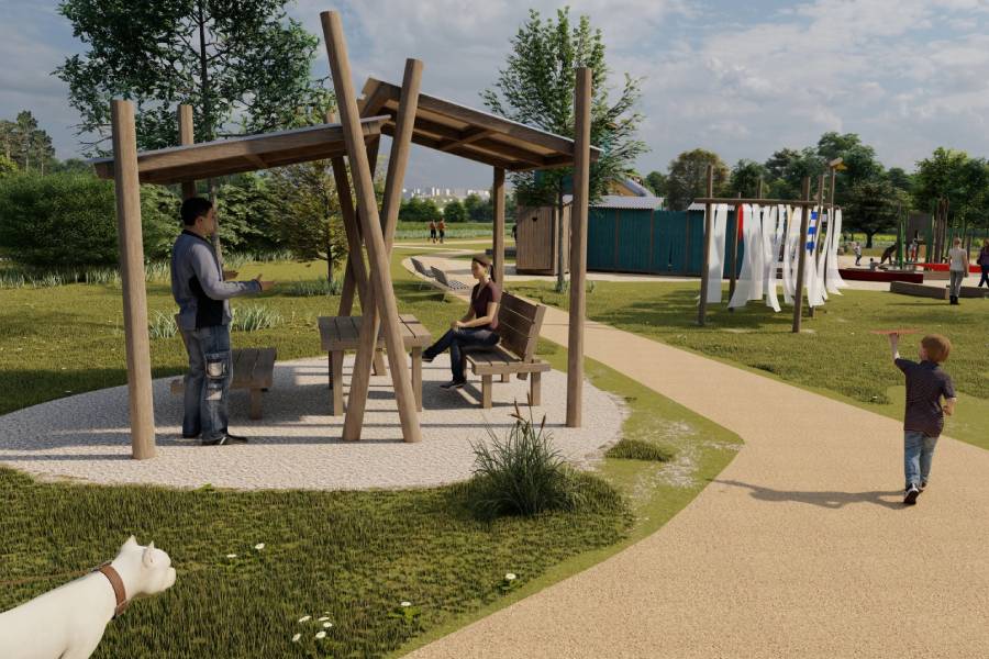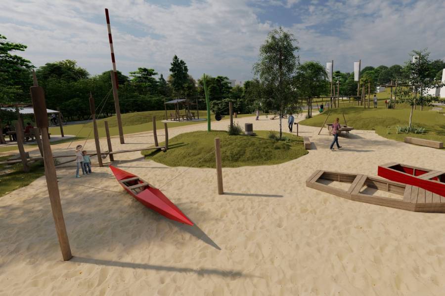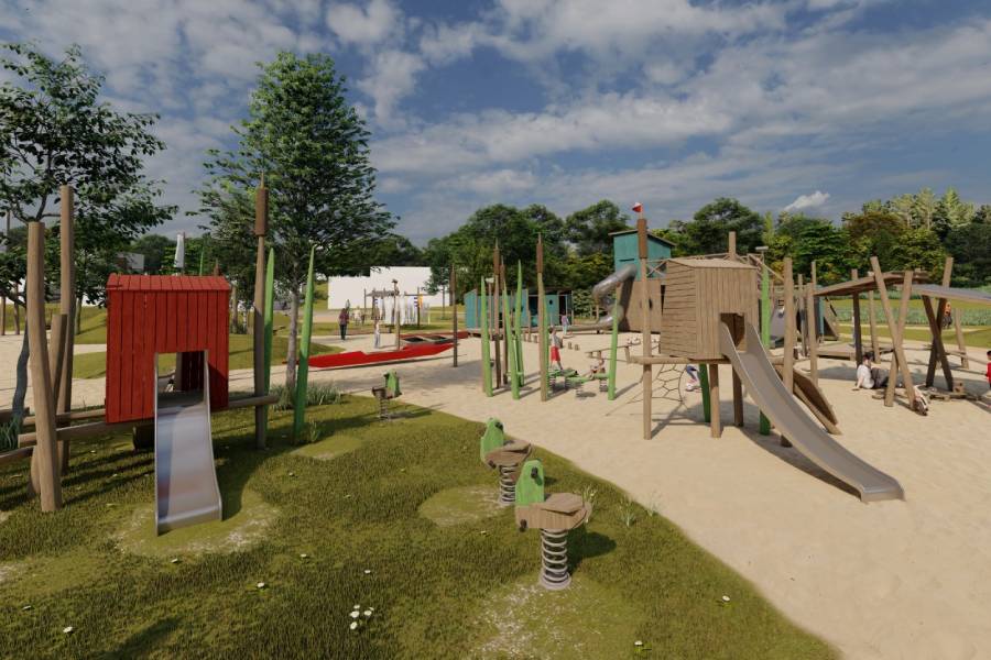 Současné dětské hřiště má za sebou již deset let provozu a přestává vyhovovat moderním požadavkům. Nové hřiště nabídne širokou škálu herních prvků: prolézačky, skluzavky, tobogán, houpačky, kolotoč nebo originální „Talk Tubes“ – kombinaci hlásné trouby a naslouchadla, díky nimž si děti budou moci povídat napříč hřištěm. Rodiče ocení zastřešené posezení a chybět nebude ani malé pódium pro kulturní akce a dětské závody.