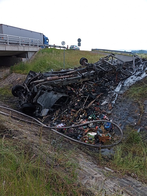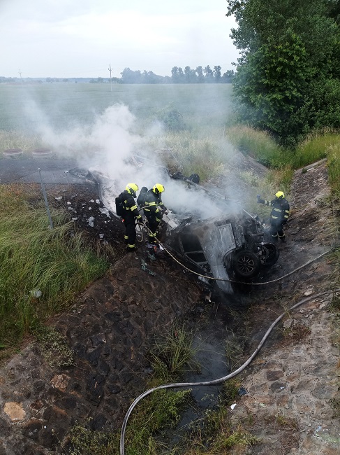 Po osmé hodině ranní sjelo nákladní auto do potoka z dálnice mezi Kroměříží a Hulínem. Při nehodě se převrátilo na střechu a začalo hořet. „Po příjezdu hasičů bylo vozidlo celé v plamenech. Hasiči ihned zahájili hasební práce a do půl hodiny měli požár uhašený. Řidič při nehodě utrpěl zranění a skončil v péči posádky zdravotnické záchranné služby,“ uvedla mluvčí hasičů Lucie Javoříková.