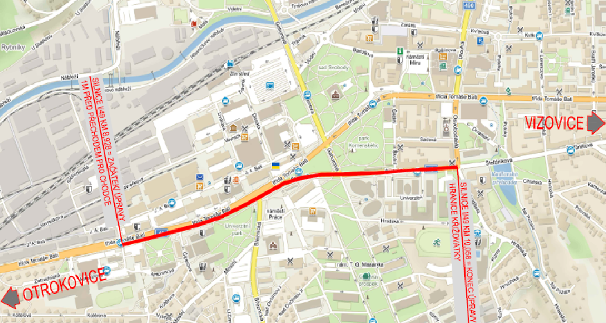 Opravy se týkají úseku od křižovatky ulic Tomáše Bati a Antonínova po křižovatku Štefánikova a Osvoboditelů. „Dokončení prací předpokládáme 12. srpna. Po celou dobu bude opravovaný úsek průjezdný jedním jízdním pruhem,“ informovala mluvčí zlínské správy ŘSD Lucie Trubelíková.