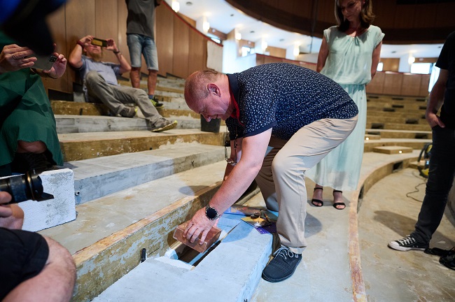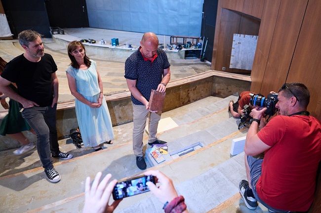 ZLÍN – Při příležitosti rekonstrukce Velkého sálu ve zlínském divadle uložili divadelníci do hlediště měděnou krabičku o rozměrech 15,5x21x5 centimetrů se vzkazem pro budoucí generace. Originální schránka vyrobená v divadelních dílnách je umístěna do druhé řady a ukrývá reklamní nosiče divadla a několik dalších zajímavostí včetně informačních brožur města Zlína.