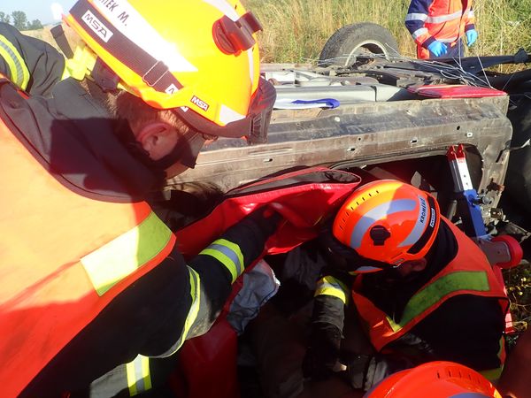 Ve voze s ním cestovala ještě žena se dvěma dětmi, všichni tři byli při příjezdu hasičů z auta venku. „Řidič zůstal ve vozidle zaklíněn a k jeho záchraně muselo být použito hydraulické vyprošťovací zařízení. Po necelé půlhodině pak byl i on předán do péče zdravotnických záchranářů,“ uvedl mluvčí hasičů Adam Fuksa.