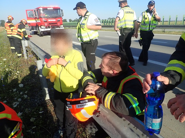 KROMĚŘÍŽSKO – Únava překvapila řidiče, který se s rodinou vracel z letní dovolené. Havaroval na dálnici D1 u Hulína a zůstal zaklíněný ve voze.