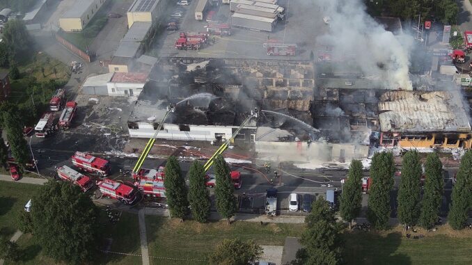 Ve středu 23. srpna před půl šestou začalo hořet v dílně jedné ze společnosti a plameny se postupně šířily na okolní firmy sídlící v budově. „Policisté v průběhu hašení požáru řídili na místě dopravu, protože hrozilo zřícení objektu. Bylo nutné uzavřít třídu T. Bati a zkontaktovat jednotlivé majitele objektů. Zjišťovali, zda se uvnitř firem nikdo nenachází. Při požáru naštěstí nedošlo k žádnému zranění, škoda je předběžně vyčíslena na 90 milionů korun,“ uvedla policejní mluvčí Monika Kozumplíková.