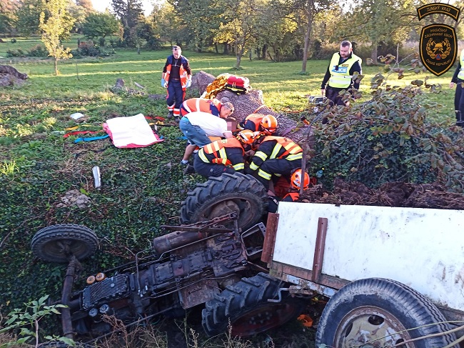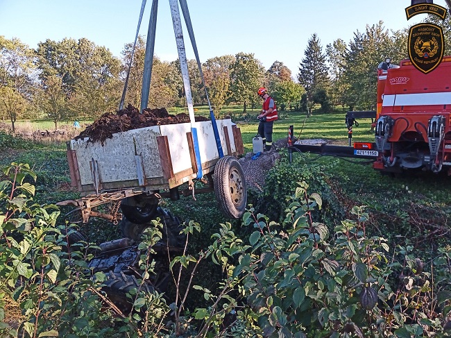 „Hasiči co nejrychleji stabilizovali traktor i přívěs a začali vyprošťovat muže, což se jim během krátké chvíle podařilo a zraněného si mohla do péče převzít posádka zdravotnické záchranné služby. Ta po ošetření převezla muže do nemocnice,“ přiblížila mluvčí hasičů Lucie Javoříková.