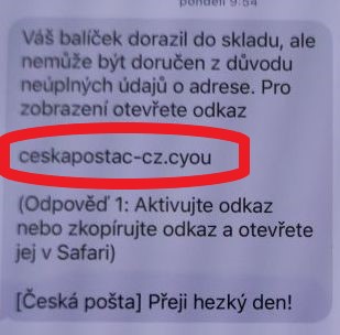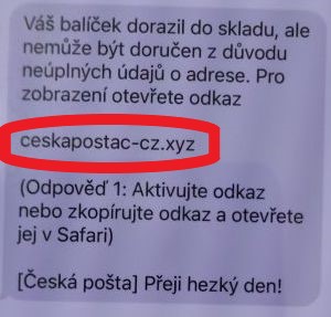 V minulém týdnu přišly ženě během jednoho dopoledne hned dvě sms zprávy, které vypadaly, že jsou zaslané od České pošty. Informovaly ji o tom, že jí nemůže být doručen balíček kvůli chybějícím údajům. Následoval odkaz na údajné stránky dopravce.