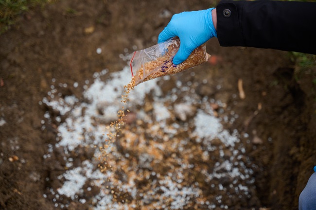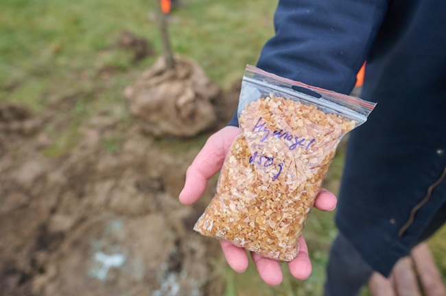 Biologicky rozložitelné hydrogely na bázi mléčné syrovátky přidali zahradníci ke kořenovým systémům stromů v tekuté i sušené podobě. Některé nechali bez hydrogelů, aby měli později možnost porovnání.